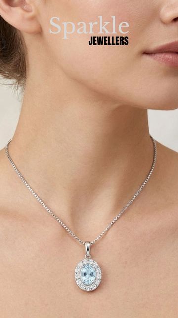 SKU107250: Oval Aquamarine Halo Diamond Pendant Necklace