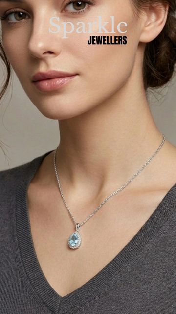 SKU107127: Aquamarine Teardrop Pendant Necklace with Diamond Halo