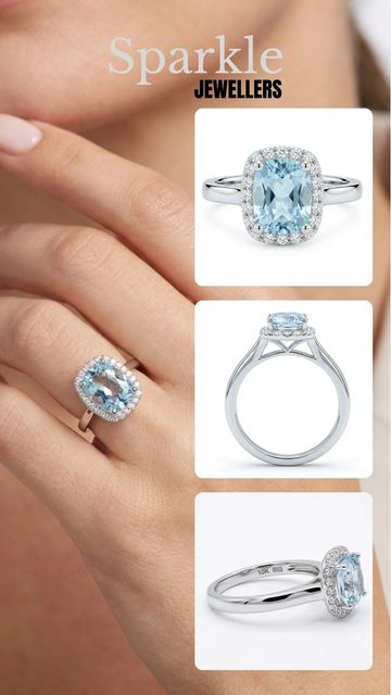 SKU105634: Aquamarine Center stone, beautifully surrounded by a sparkling diamond halo