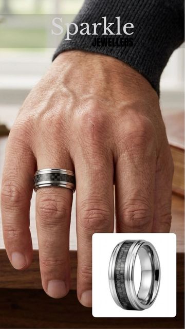 TR078: Tungsten Ring with a sleek carbon fiber inlay